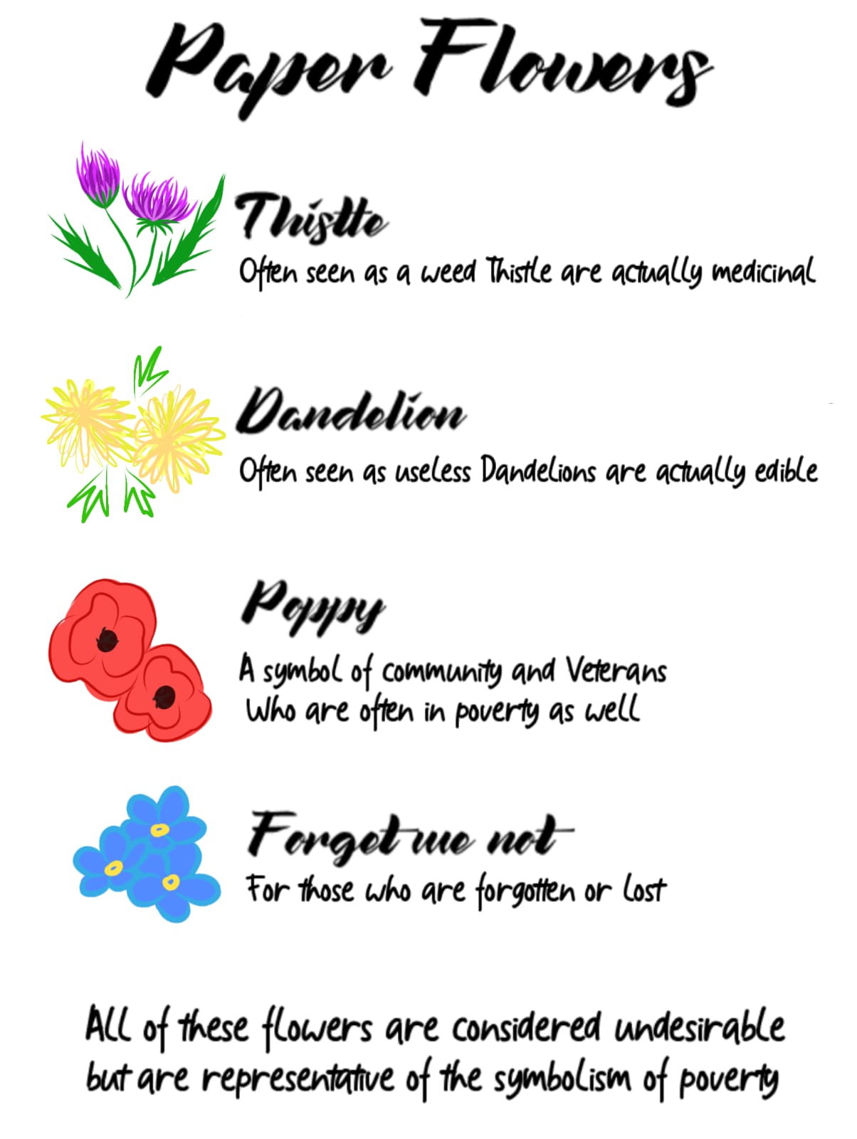 They decided to decorate the hall with paper flowers, which are commonly regarded as weeds, but which could symbolise poverty.