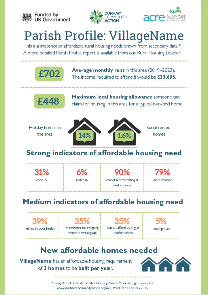 County Durham now has a better understanding of rural housing needs in each Civil Parish, thanks to DCA commissioning a report by ARC4 in 2024.
